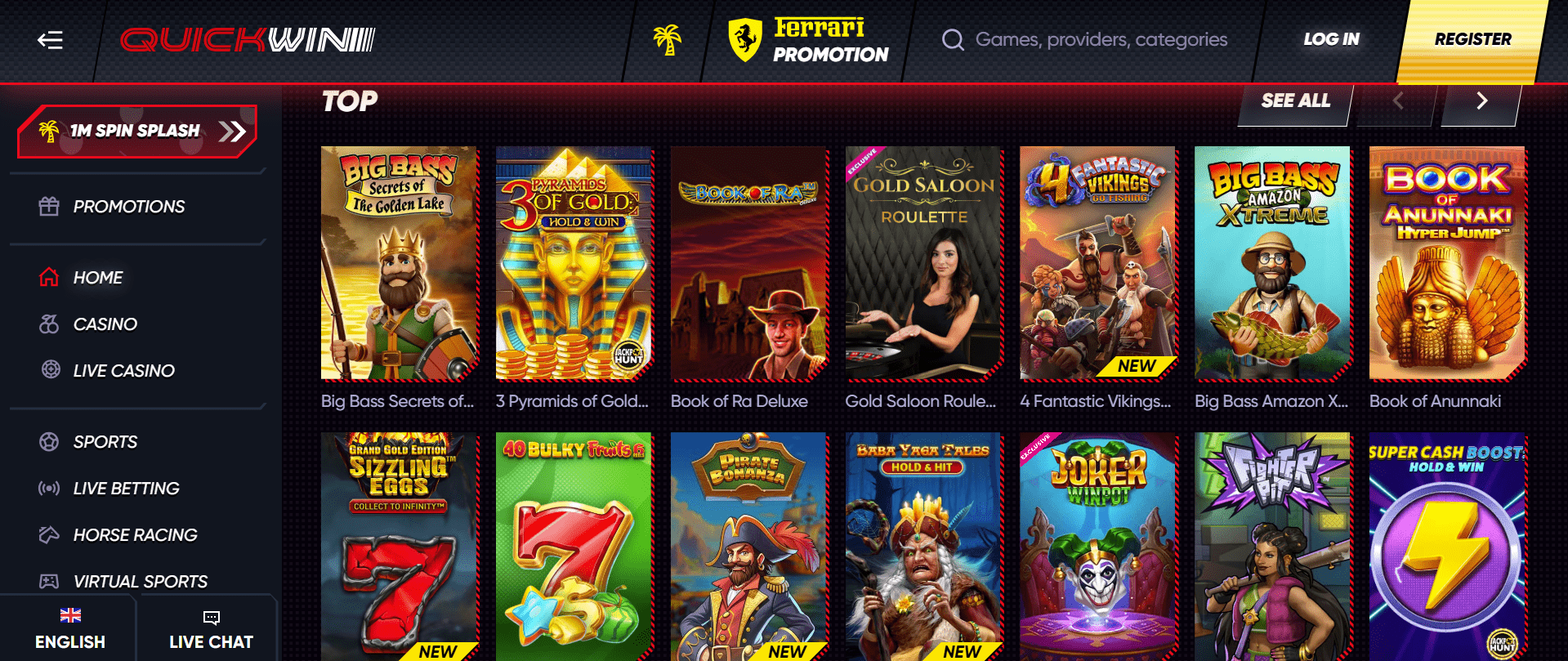 QuickWin bietet eine hervorragende Auswahl an Spielen. Das Unternehmen arbeitet mit über 60 Entwicklern zusammen, darunter einige der bekanntesten der Branche. Sie haben die Wahl zwischen über 4.000 verschiedenen Casinospielen wie Video-, Jackpot- und Megaways-Slots, Blackjack, Roulette, Baccarat, Poker und mehr. Außerdem bieten wir eine große Auswahl an Wettmärkten für fast alle großen und kleinen Sportereignisse weltweit – sowohl vor als auch live.