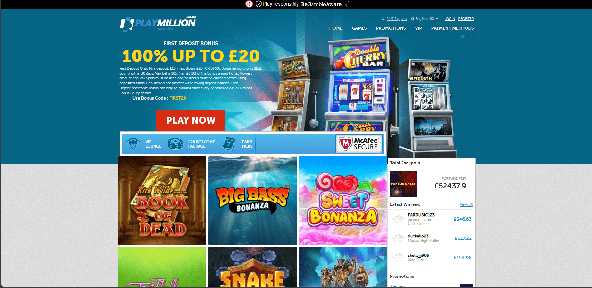 PlayMillion Casino is a sleek, contemporary online casino with a user-friendly interface for gamers. PlayMillion Casino offers a wide selection of well-liked online video slots and casino games because it is powered by leading providers in the industry, including NetEnt, Play'n GO, and Yggdrasil Gaming. They are licensed by the UK Gambling Commission, Malta Gaming Authority, and Lotteries.